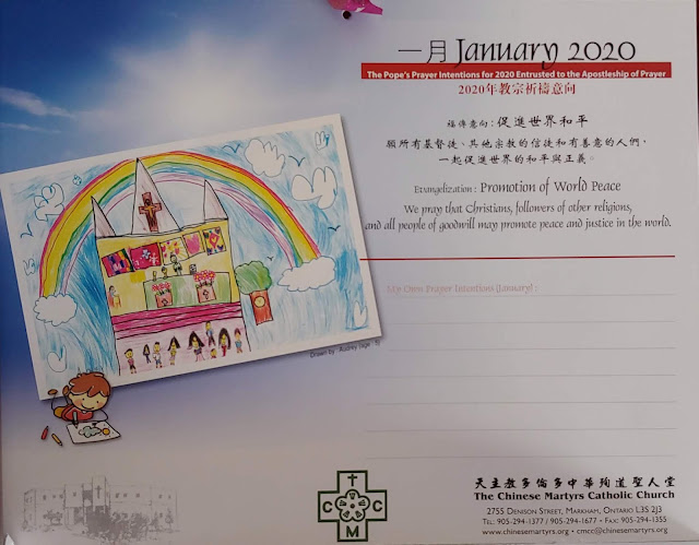 Audrey's Drawing Featured on Chinese Martyrs Catholic Church Calendar